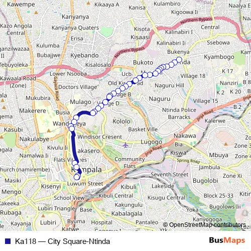 See why over 2 million users trust and consider busmaps.com as the best public transport website. busmaps gives you Kampala Buses suggested routes, real-time bus tracker, line route maps in Kampala, and helps to find the closest Ka118 bus stops near you. No internet available? Download an offline PDF map and bus schedule for the Ka118 bus to take on your trip.