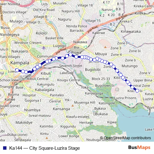 The first stop of the Ka144 bus route is Luzira Stage and the last stop is Bank of Uganda Kampala. Ka144 (City Square-Luzira Stage) is operational during everyday.