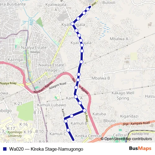See why over 2 million users trust and consider busmaps.com as the best public transport website. busmaps gives you Kampala Buses suggested routes, real-time bus tracker, line route maps in Kampala, and helps to find the closest Wa020 bus stops near you. No internet available? Download an offline PDF map and bus schedule for the Wa020 bus to take on your trip.