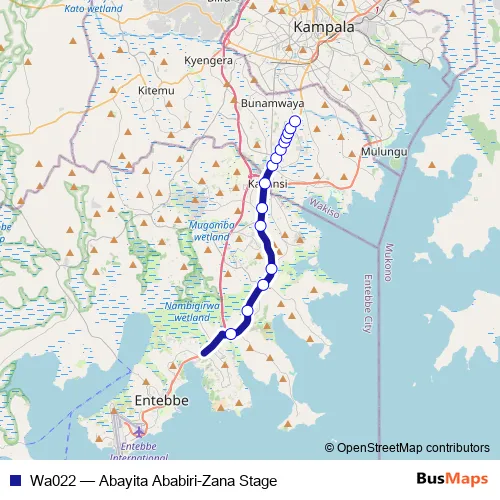 Bus Wa022 - Abayita Ababiri-Zana Stage in Kampala: Stops & Timetable