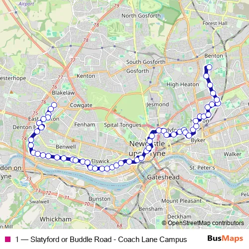 See why over 2 million users trust and consider busmaps.com as the best public transport website. busmaps gives you Newcastle upon Tyne Buses suggested routes, real-time bus tracker, line route maps in Newcastle upon Tyne, and helps to find the closest 1 bus stops near you. No internet available? Download an offline PDF map and bus schedule for the 1 bus to take on your trip.