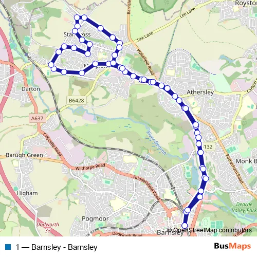 See why over 2 million users trust and consider busmaps.com as the best public transport website. busmaps gives you Barnsley Buses suggested routes, real-time bus tracker, line route maps in Barnsley, and helps to find the closest 1 bus stops near you. No internet available? Download an offline PDF map and bus schedule for the 1 bus to take on your trip.