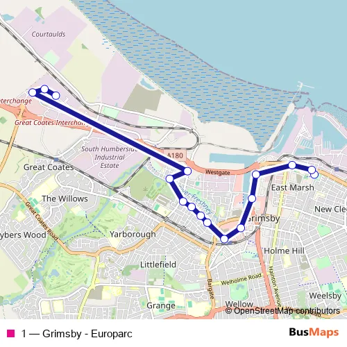 Bus 1 - Grimsby - Europarc: Full Schedule in Grimsby