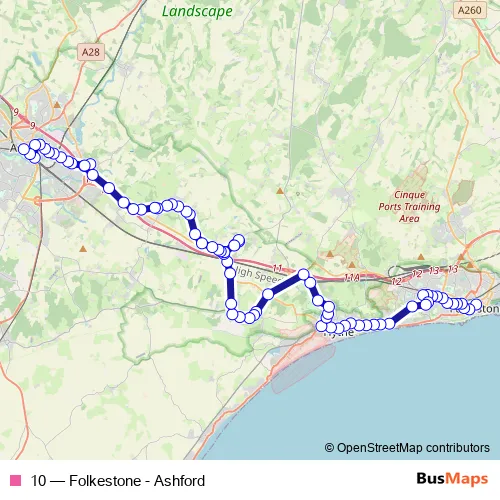 Click here to view the nearest 10 - Folkestone - Ashford bus stop.