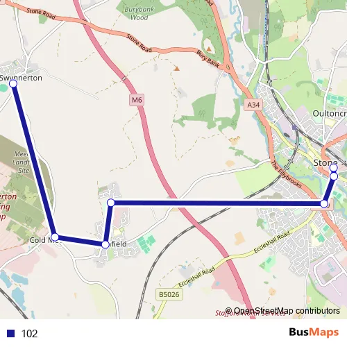 Bus 102 in Stafford: Stops & Timetable