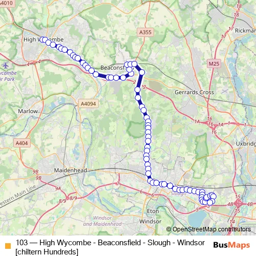 Click here to view the nearest 103 - High Wycombe - Beaconsfield - Slough - Windsor [chiltern Hundreds] bus stop.