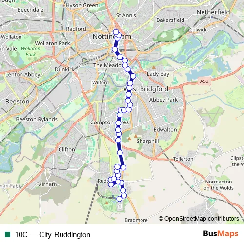 Click here to view the nearest 10C - City-Ruddington bus stop.