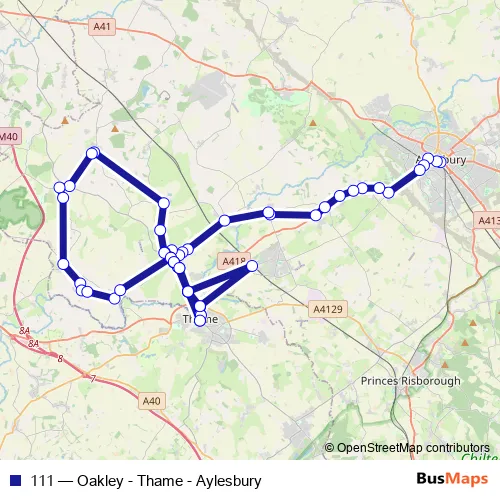 The first stop of the 111 bus route is Aylesbury Bus Stn and the last stop is Town Hall. 111 (Oakley - Thame - Aylesbury) is operational during on weekdays.