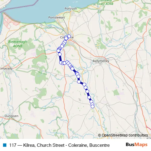 See why over 2 million users trust and consider busmaps.com as the best public transport website. busmaps gives you Coleraine Buses suggested routes, real-time bus tracker, line route maps in Coleraine, and helps to find the closest 117 bus stops near you. No internet available? Download an offline PDF map and bus schedule for the 117 bus to take on your trip.