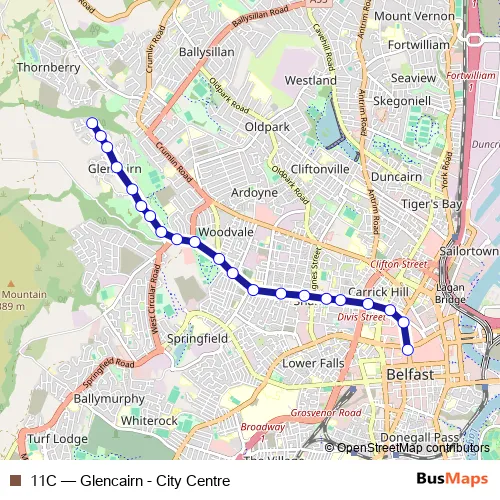 Bus 11C - Glencairn - City Centre: Full Schedule in Belfast