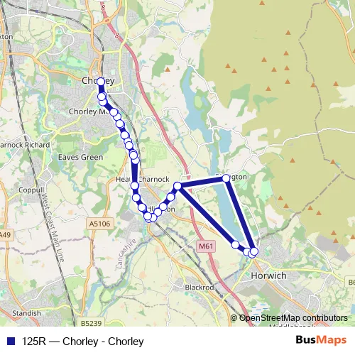 See why over 2 million users trust and consider busmaps.com as the best public transport website. busmaps gives you Chorley Buses suggested routes, real-time bus tracker, line route maps in Chorley, and helps to find the closest 125R bus stops near you. No internet available? Download an offline PDF map and bus schedule for the 125R bus to take on your trip.
