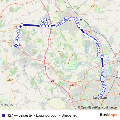 Click here to view the nearest 127 - Leicester - Loughborough - Shepshed bus stop.