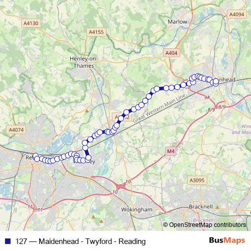Click here to view the nearest 127 - Maidenhead - Twyford - Reading bus stop.