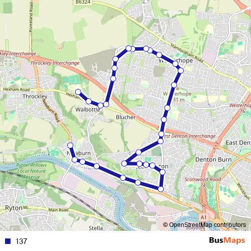 The first stop of the 137 bus route is Newburn Road-Park Road and the last stop is Walbottle Academy. 137 is operational during on weekdays.