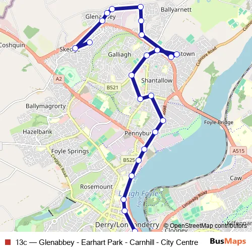 Bus 13c - Glenabbey - Earhart Park - Carnhill - City Centre in Derry: Stops & Timetable