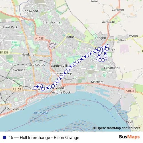 Bus 15 - Hull Interchange - Bilton Grange in Kingston upon Hull: Stops & Timetable