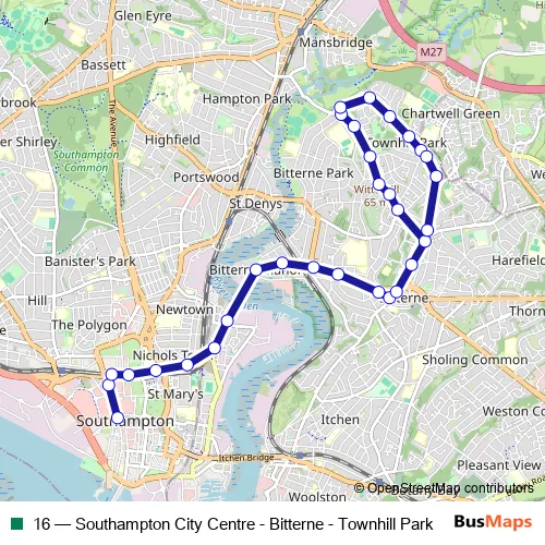 See why over 2 million users trust and consider busmaps.com as the best public transport website. busmaps gives you Southampton Buses suggested routes, real-time bus tracker, line route maps in Southampton, and helps to find the closest 16 bus stops near you. No internet available? Download an offline PDF map and bus schedule for the 16 bus to take on your trip.
