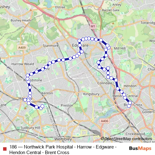 Bus 186 - Northwick Park Hospital - Harrow - Edgware - Hendon Central - Brent Cross: Full Schedule in Hendon