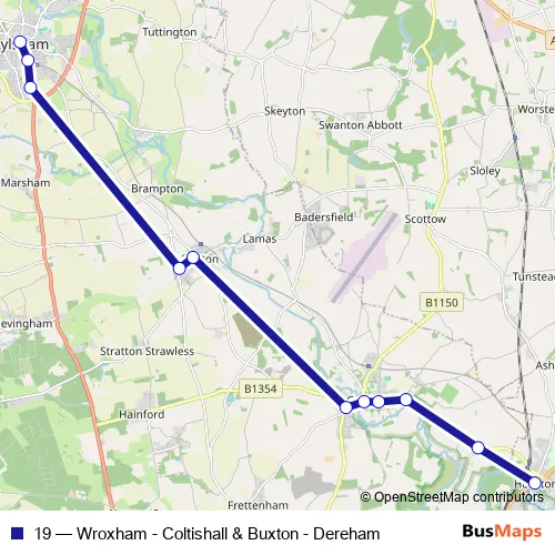 Click here to view the nearest 19 - Wroxham - Coltishall & Buxton - Dereham bus stop.