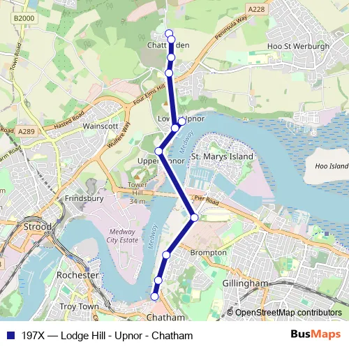 Click here to view the nearest 197X - Lodge Hill - Upnor - Chatham bus stop.