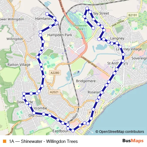 Click here to view the nearest 1A - Shinewater - Willingdon Trees bus stop.
