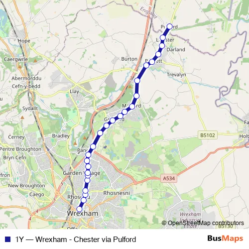 See why over 2 million users trust and consider busmaps.com as the best public transport website. busmaps gives you Wrexham Buses suggested routes, real-time bus tracker, line route maps in Wrexham, and helps to find the closest 1Y bus stops near you. No internet available? Download an offline PDF map and bus schedule for the 1Y bus to take on your trip.
