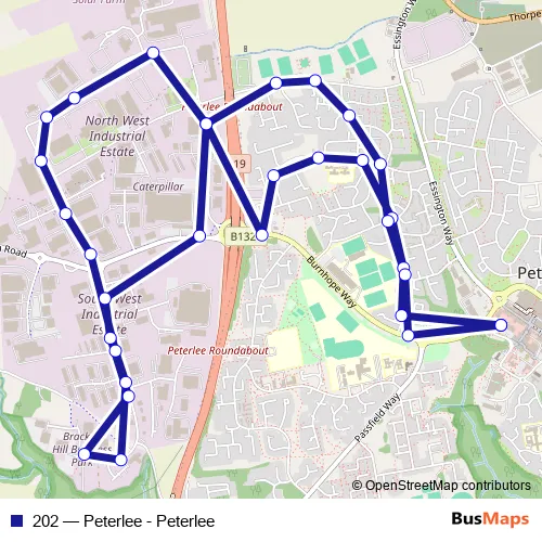 The first stop of the 202 bus route is Peterlee Bus Station Stand B and the last stop is Peterlee Bus Station Stand B. 202 (Peterlee - Peterlee) is operational during everyday.
