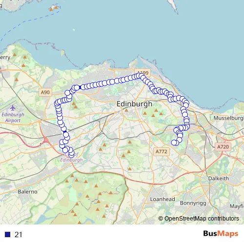 See why over 2 million users trust and consider busmaps.com as the best public transport website. busmaps gives you Edinburgh Buses suggested routes, real-time bus tracker, line route maps in Edinburgh, and helps to find the closest 21 bus stops near you. No internet available? Download an offline PDF map and bus schedule for the 21 bus to take on your trip.