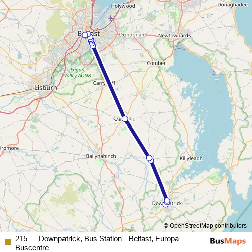 See why over 2 million users trust and consider busmaps.com as the best public transport website. busmaps gives you Belfast Buses suggested routes, real-time bus tracker, line route maps in Belfast, and helps to find the closest 215 bus stops near you. No internet available? Download an offline PDF map and bus schedule for the 215 bus to take on your trip.