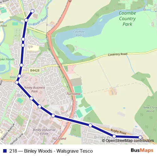 Bus 218 - Binley Woods - Walsgrave Tesco in Coventry: Stops & Timetable