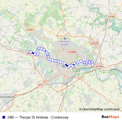 Bus 24B - Thorpe St Andrew - Costessey in Norwich: Stops & Timetable