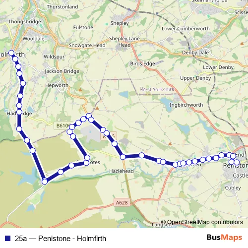 See why over 2 million users trust and consider busmaps.com as the best public transport website. busmaps gives you Penistone Buses suggested routes, real-time bus tracker, line route maps in Penistone, and helps to find the closest 25a bus stops near you. No internet available? Download an offline PDF map and bus schedule for the 25a bus to take on your trip.