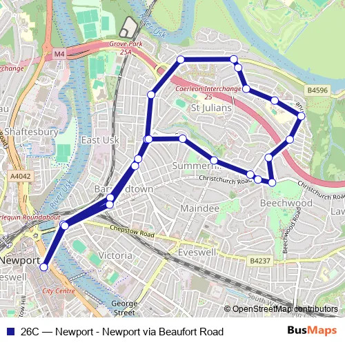 Click here to view the nearest 26C - Newport - Newport via Beaufort Road bus stop.