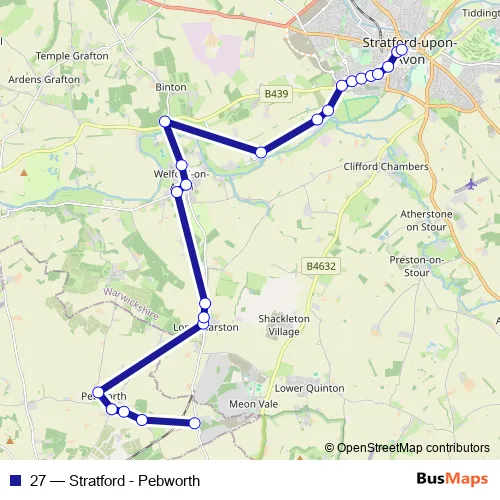 Click here to view the nearest 27 - Stratford - Pebworth bus stop.