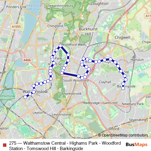 The first stop of the 275 bus route is Barkingside Tesco and the last stop is St James Street Station. 275 (Walthamstow Central - Highams Park - Woodford Station - Tomswood Hill - Barkingside) is operational during everyday.