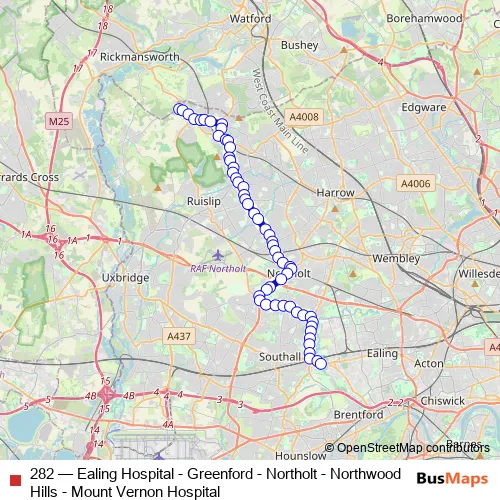 Metroline Travel 282 Ealing Hospital - Greenford - Northolt - Northwood Hills - Mount Vernon Hospital Bus