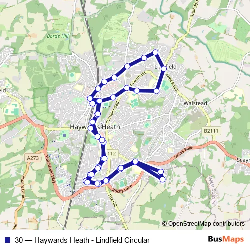 Click here to view the nearest 30 - Haywards Heath - Lindfield Circular bus stop.