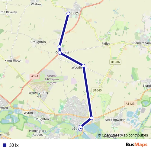 Bus 301x in Warboys: Stops & Timetable