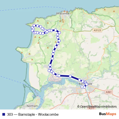 Click here to view the nearest 303 - Barnstaple - Woolacombe bus stop.