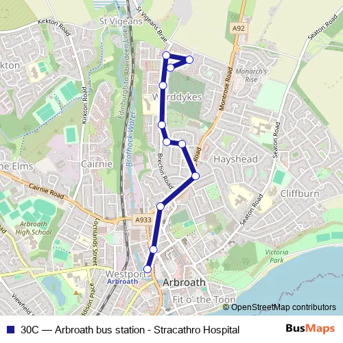 See why over 2 million users trust and consider busmaps.com as the best public transport website. busmaps gives you Arbroath Buses suggested routes, real-time bus tracker, line route maps in Arbroath, and helps to find the closest 30C bus stops near you. No internet available? Download an offline PDF map and bus schedule for the 30C bus to take on your trip.