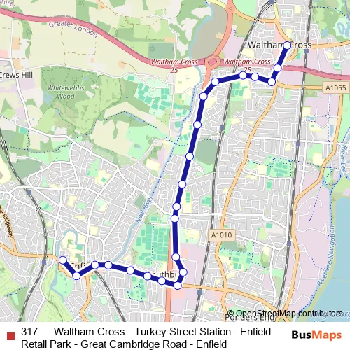 Bus 317 - Waltham Cross - Turkey Street Station - Enfield Retail Park - Great Cambridge Road - Enfield: Full Schedule in Enfield Town