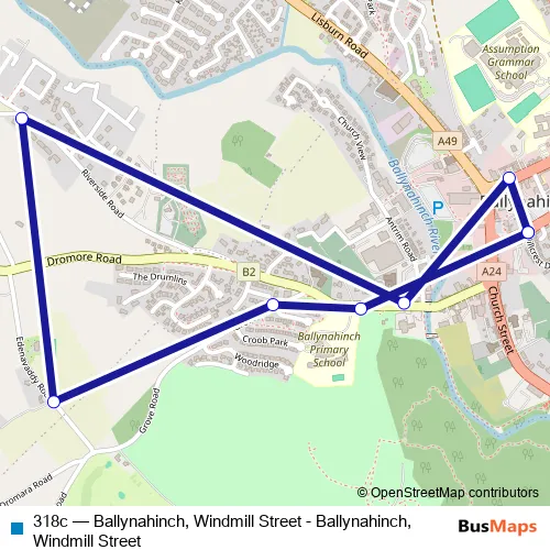 Click here to view the nearest 318c - Ballynahinch, Windmill Street - Ballynahinch, Windmill Street bus stop.