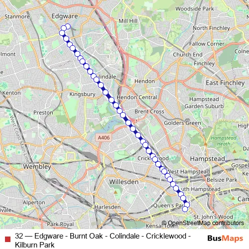 Bus 32 - Edgware - Burnt Oak - Colindale - Cricklewood - Kilburn Park: Full Schedule in London