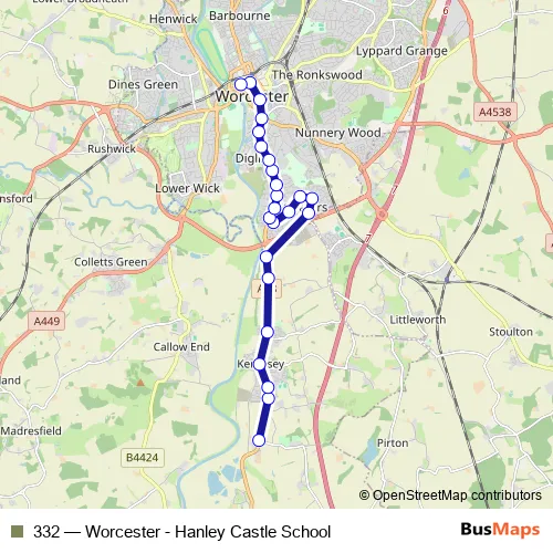 Click here to view the nearest 332 - Worcester - Hanley Castle School bus stop.