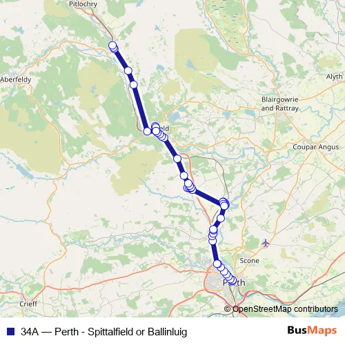 Tulliemet Road End. 34A (Perth - Spittalfield or Ballinluig) is operational during everyday.