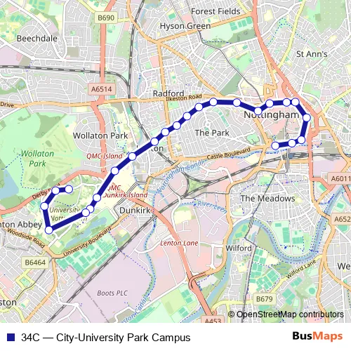 See why over 2 million users trust and consider busmaps.com as the best public transport website. busmaps gives you Nottingham Buses suggested routes, real-time bus tracker, line route maps in Nottingham, and helps to find the closest 34C bus stops near you. No internet available? Download an offline PDF map and bus schedule for the 34C bus to take on your trip.