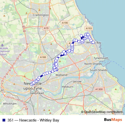 See why over 2 million users trust and consider busmaps.com as the best public transport website. busmaps gives you Wallsend Buses suggested routes, real-time bus tracker, line route maps in Wallsend, and helps to find the closest 351 bus stops near you. No internet available? Download an offline PDF map and bus schedule for the 351 bus to take on your trip.