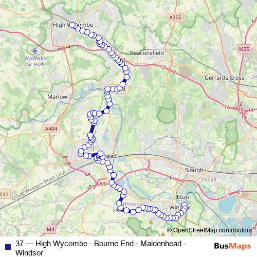 Bus 37 - High Wycombe - Bourne End - Maidenhead - Windsor Schedule in Maidenhead