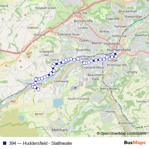 See why over 2 million users trust and consider busmaps.com as the best public transport website. busmaps gives you Huddersfield Buses suggested routes, real-time bus tracker, line route maps in Huddersfield, and helps to find the closest 394 bus stops near you. No internet available? Download an offline PDF map and bus schedule for the 394 bus to take on your trip.