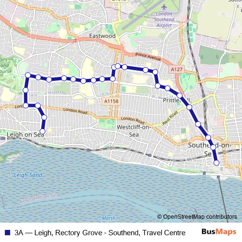 Click here to view the nearest 3A - Leigh, Rectory Grove - Southend, Travel Centre bus stop.